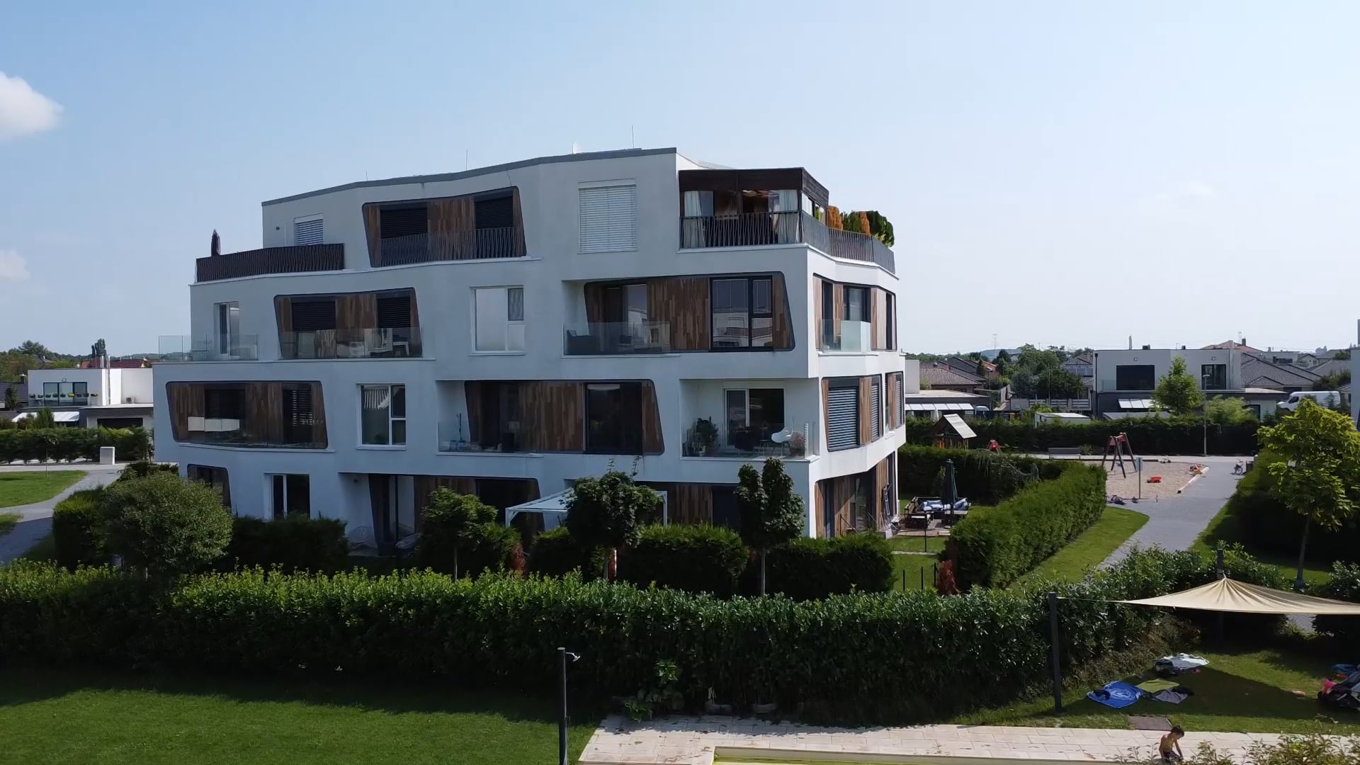 The main landmark of the neighborhood is a central promenade and three lakes, one of which is used for swimming and the other two for relaxation. In the multi-functional part of the building, there are services, such as a restaurant, grocery store, café, ice cream parlor, hairdresser's, and dog salon. There are also sports fields and playgrounds. Nearby is a complex of commercial shops with supermarkets and a gas station. Transport accessibility to Bratislava is faster thanks to the newly built access road to the D4 and R7 highways.