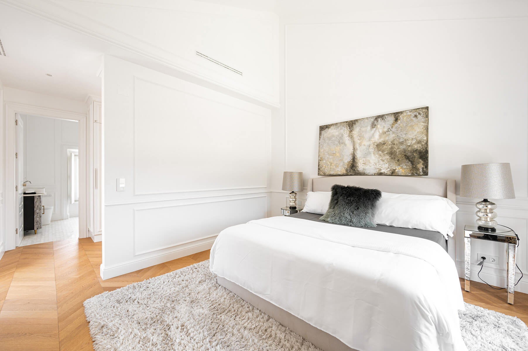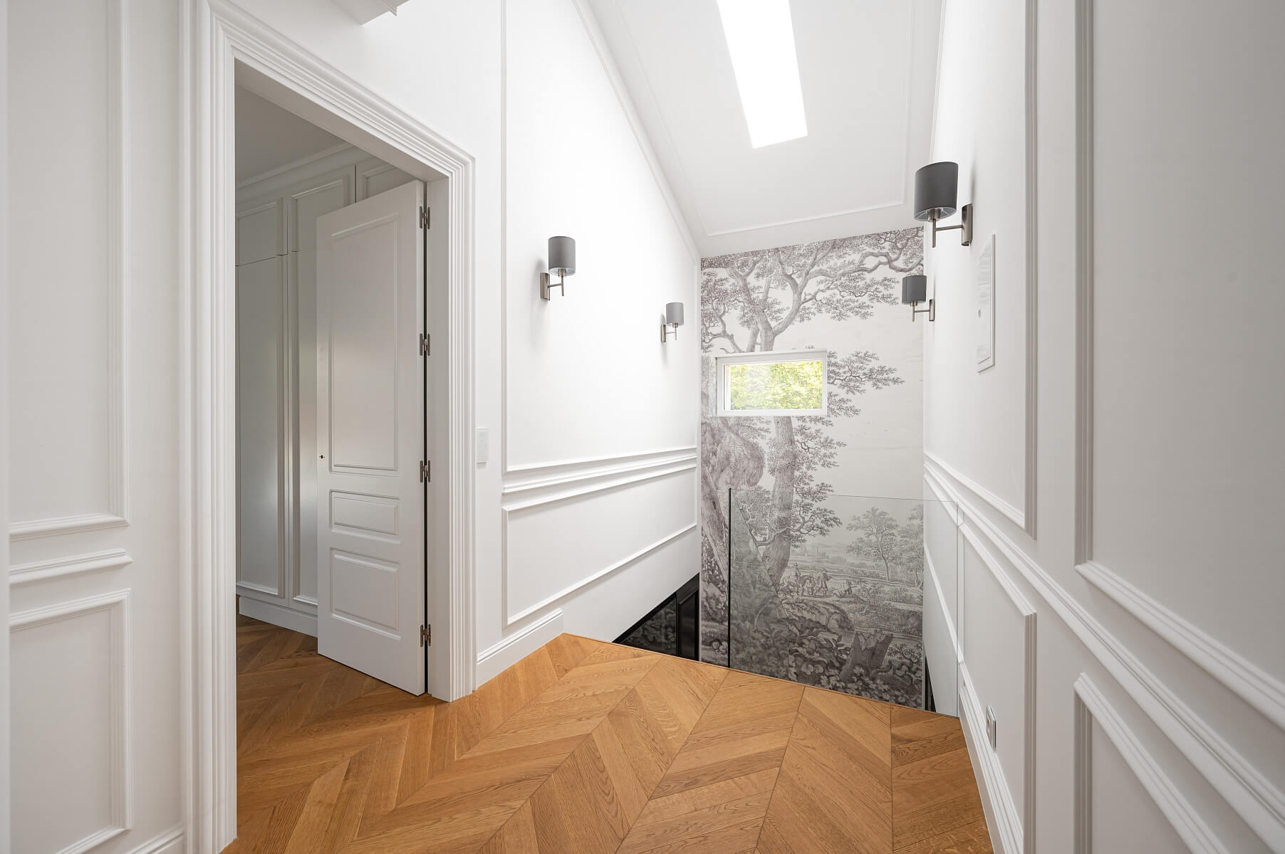 Interiér vily je rozvrhnutý tak, aby maximalizoval priestor a prístup prirodzeného svetla. Na prízemí sa rozkladá veľkoryso poňatá otvorená obývacia izba s jedálňou a moderná kuchyňa s varným ostrovčekom. Ďalej je tu spálňa s en-suite kúpeľňou a vstupom do záhrady a samostatná toaleta. Poschodie je súkromnou zónou, kde je umiestnená hlavná spálňa so šatňou aj luxusnou kúpeľňou a druhá spálňa s vlastnou kúpeľňou. Pri hlavnej spálni je veľká terasa a balkón prístupný aj z druhej spálne.