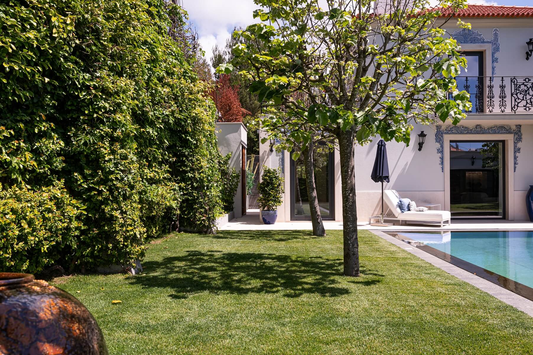 Luxusná vila po kompletnej rekonštrukcii stojí vo veľkej záhrade s bazénom v meste Cascais, bývalej rybárskej osade na pobreží oceánu, dnes jedno z najobľúbenejších sídiel v Lisabonskej metropolitnej oblasti.