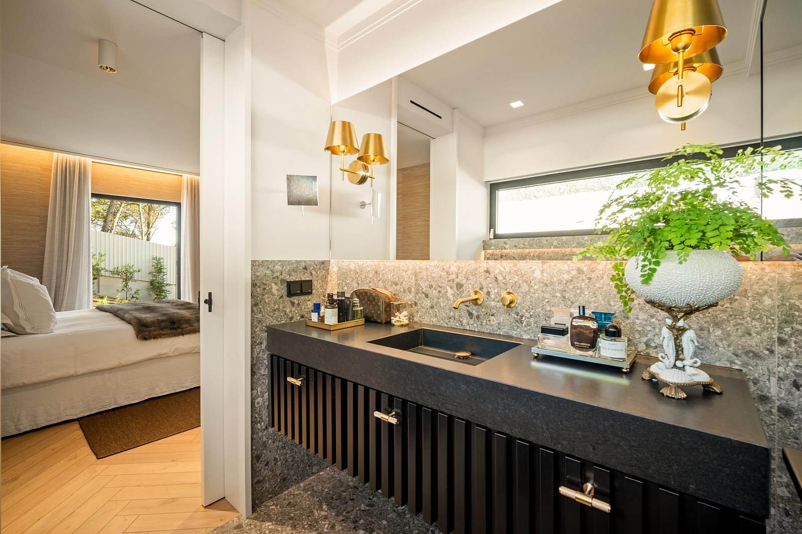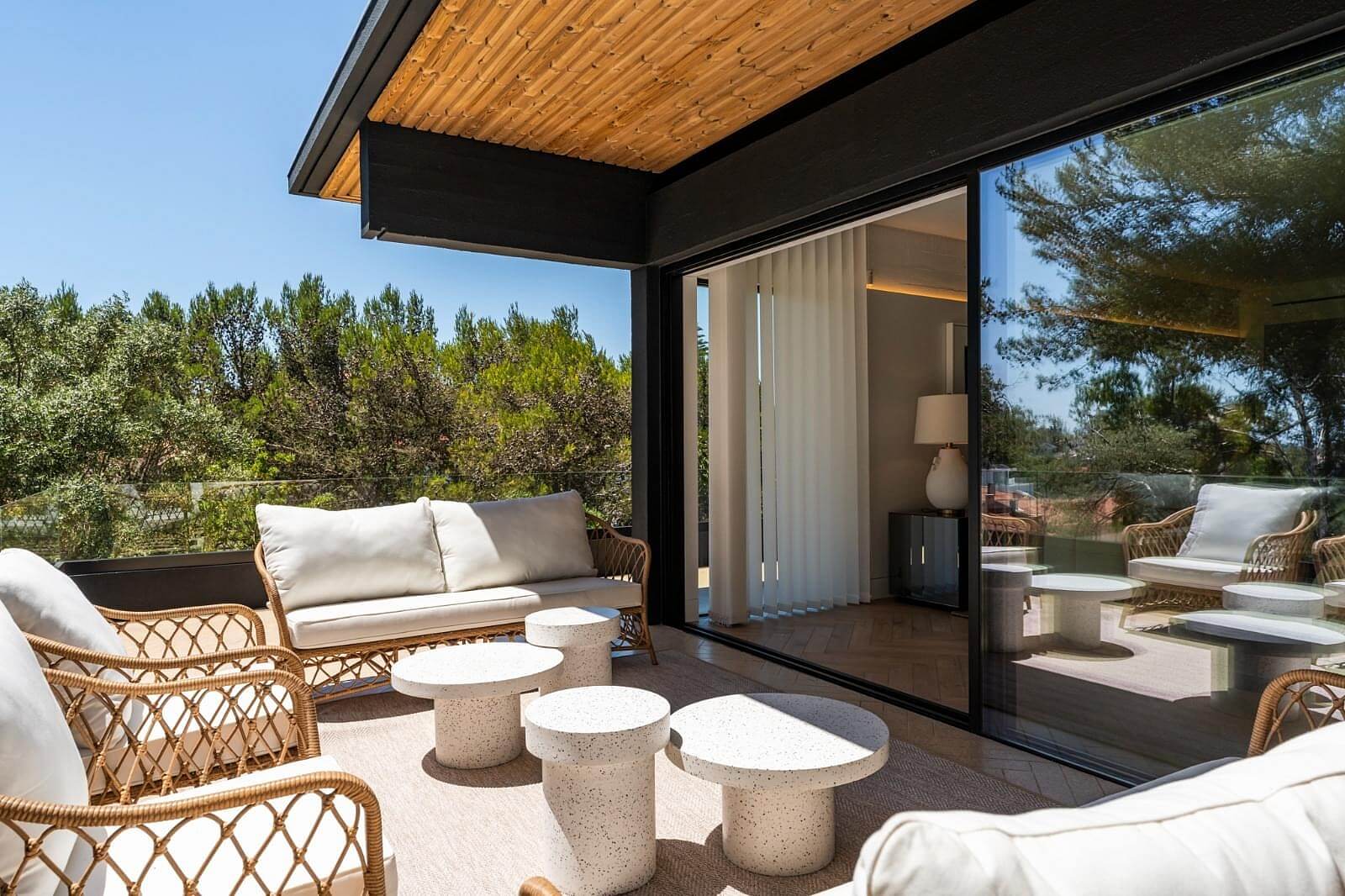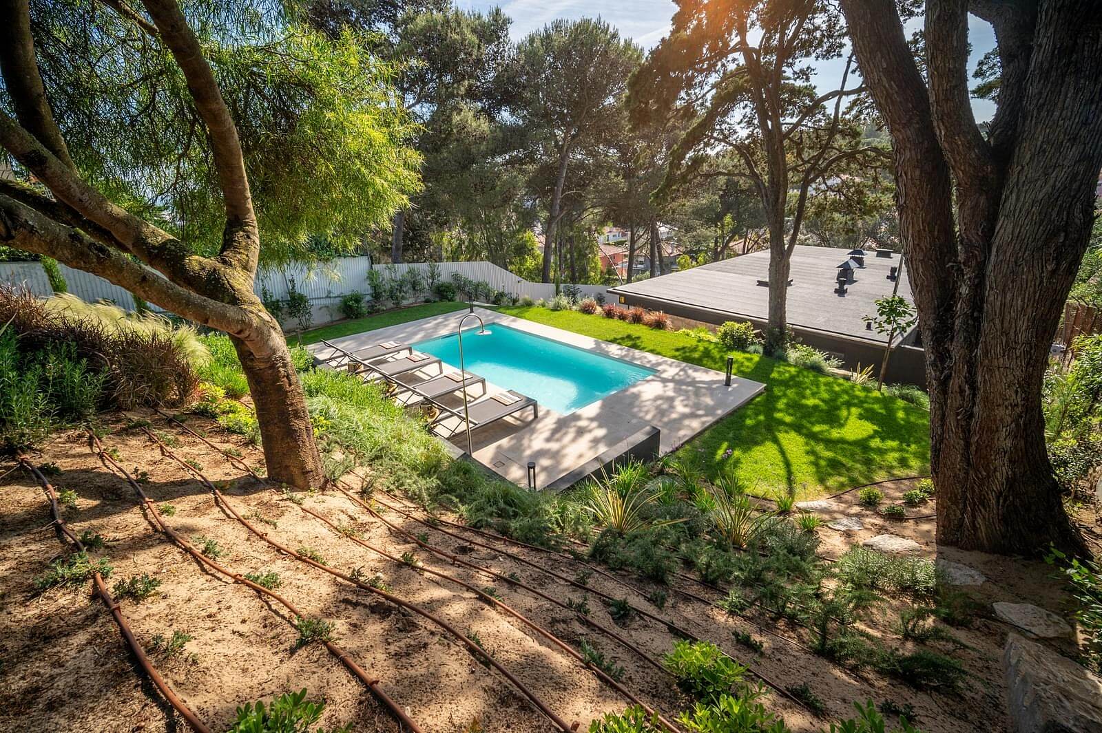 Terasovitá záhrada s bazénom tienená vysokými stromami tvorí pútavé zázemie modernej dvojpodlažnej vily, ktorá bola kompletne zrekonštruovaná podľa návrhu uznávaného architekta. Dom je situovaný v centrálnej časti mesta Cascais, ktorý je vyhlásenou rekreačnou destináciou portugalských aj zahraničných návštevníkov.